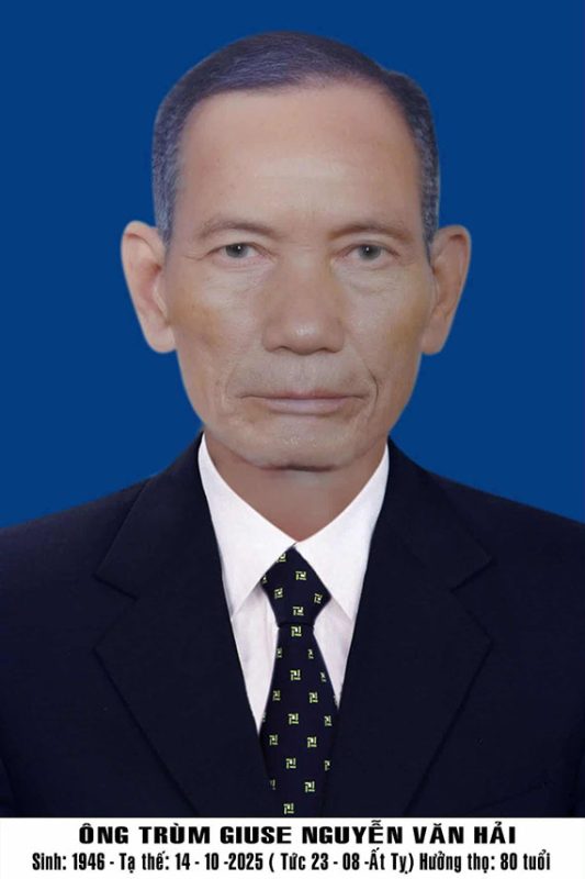 Cộng đoàn giáo xứ Trà Vy, hội đồng hương Trà Vy xin kính báo: Cụ trùm Giuse Nguyễn Văn Hải đã được Chúa gọi về lúc 8h30, ngày 14 tháng 10 năm 2025, hưởng thọ 80 tuổi.